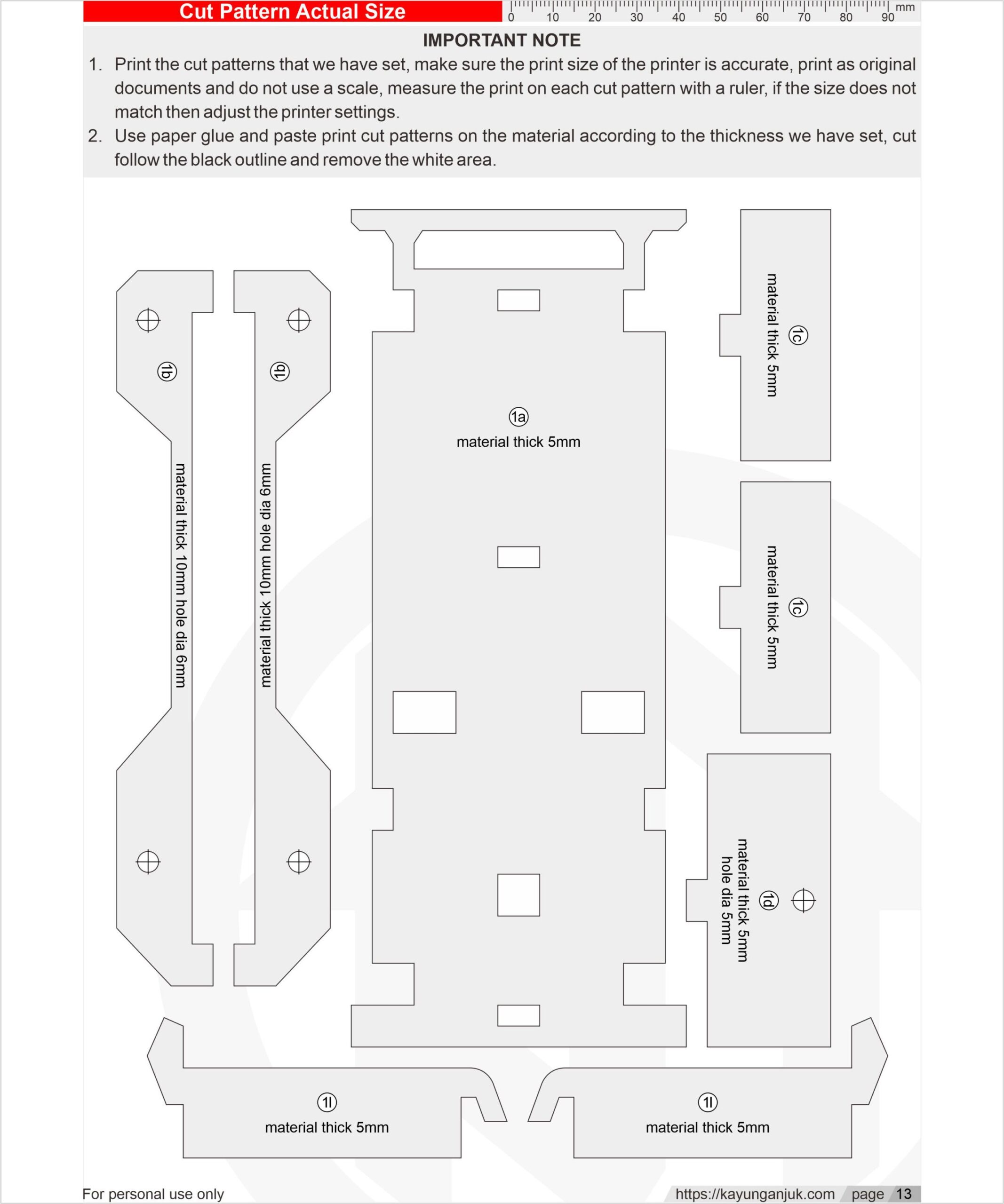- Make sure the thickness of the material is in accordance with the instructions on the cutting pattern that we set, this will greatly affect the construction and other parts during assembly.